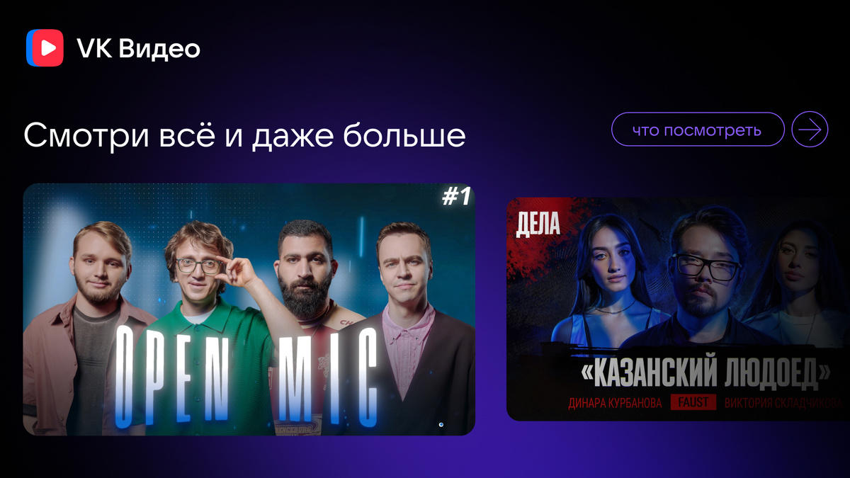 Вот они слева направо: новые выпуски шоу в VK Видео! Собрали для вас только самое топовое за неделю, вам же остаётся только выбрать контент под настроение и залипнуть. По-другому, к счастью, с VK Видео не получится! Подъехал новый сезон любимого шоу! Open Mic возвращается, и с первой же секунды становится понятно: будет жарко. Главная цель участников — попасть в Money Міс, но дорога туда выстлана юмором и внимательными взглядами судей. Кто из молодых комиков пройдёт в следующий этап и поборется за денежный приз? Решают Иван Абрамов, Гурам Амарян и Денис Дорохов. В новом выпуске — мрачная, жуткая и абсолютно реальная история, от которой стынет кровь. Василий Фауст рассказывает Вике Складчиковой и Динаре Курбановой о серийном убийце и каннибале Алексее Суклетине, который наводил ужас на Казань. Как ему удавалось скрываться? Кто помогал ему совершать жестокие преступления? И что толкнуло человека на такой страшный путь? Разбираем дело, от которого невозможно оторваться — только в VK Видео