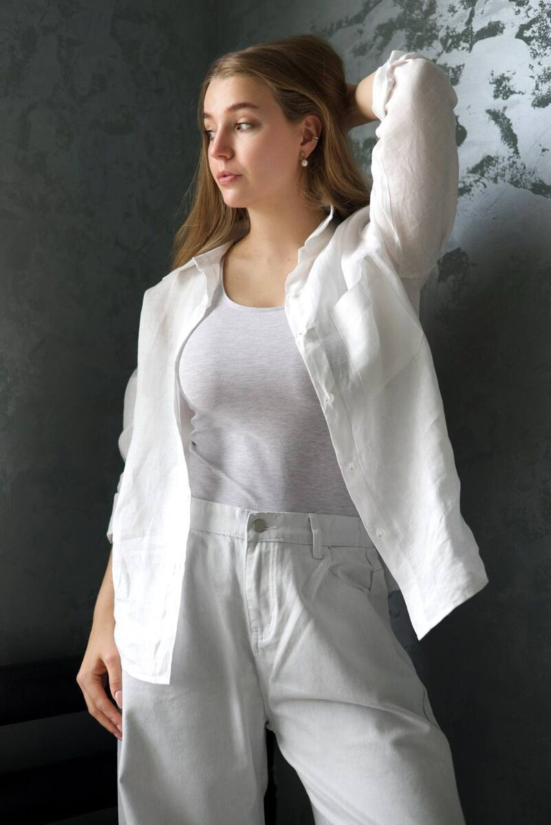 Льняная белая рубашка