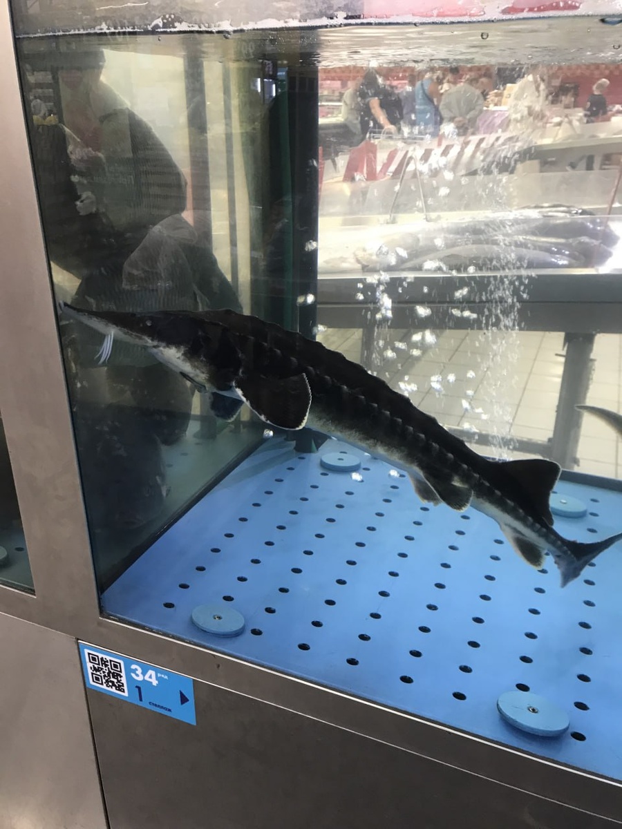Прогуливаясь по магазинам, обратил внимание на рыбок. Какие всё-таки красивые и грациозные. Да, такие породы сейчас выращивают в основном искусственно. Наверное, и правильно. В древние времена осетры водились в дикой природе, даже у нас в Ильмень-озере. Осетра для искусственно выводят в пруду или в установке замкнутого водоснабжения (УЗВ). В промышленных рыбных хозяйствах осетров держат, как правило, в бассейнах с температурой воды — 22–24°C. При более низких температурах рыбы растут медленнее, при более высоких — испытывают стресс. 🍔Питание требует сбалансированного рациона из специализированных комбикормов, содержащих 40–50% белка и около 10–15% жиров. В УЗВ кормление часто проводят из автоматических кормушек, которые равномерно распределяют корм по бассейну. А перед тем как рыба отправляется на продажу, её высаживают в чистую прозрачную воду и не кормят от недели до месяца, чтобы устранить запах тины.