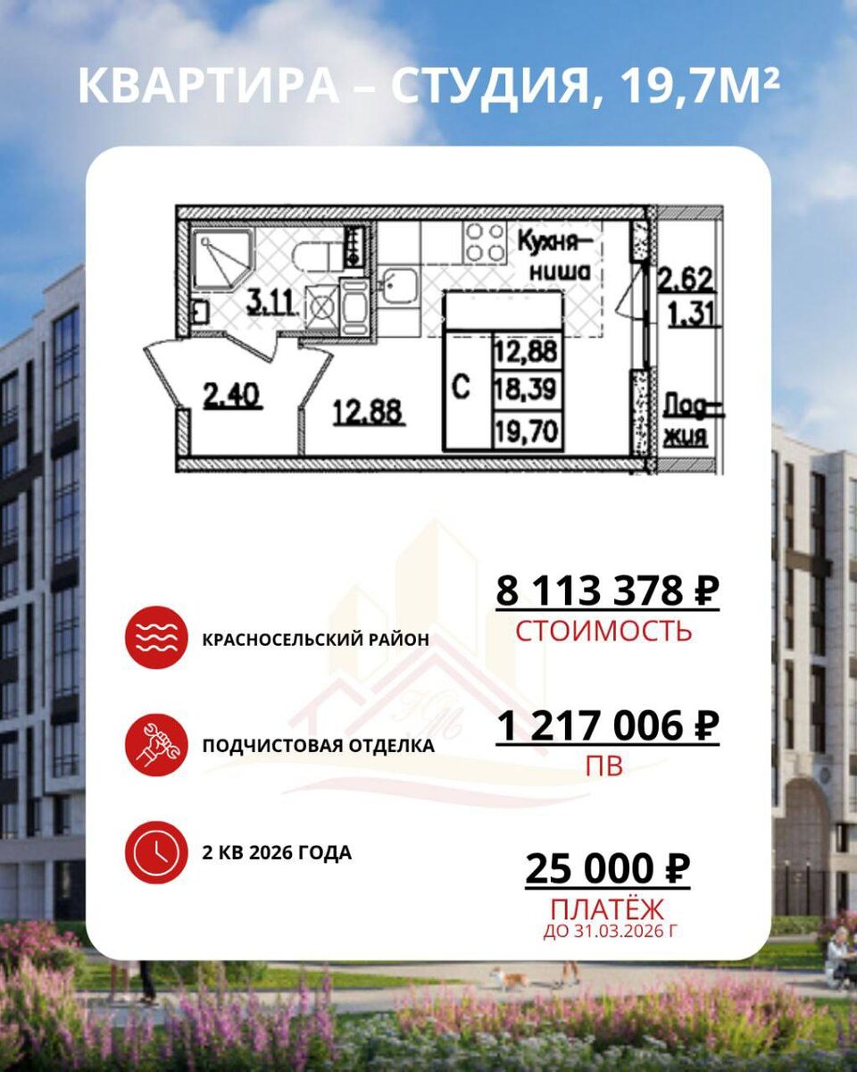 🎬 Новая реальность рассрочек: что меняется и почему не стоит тянуть С 2026 года вступают в силу новые ограничения на максимальный срок рассрочки — теперь застройщики не смогут так свободно предлагать длительные варианты оплаты. А это значит, что текущие условия на рынке — одни из самых выгодных за последние годы. Особенно на фоне высоких ипотечных ставок рассрочка становится интересной альтернативой. Но важно понимать: ❗возможность «размазать» платёж на 2–3 года скоро уйдёт ❗снижение гибкости может сделать рассрочку менее привлекательной ❗уже сейчас некоторые банки и застройщики сокращают сроки доплат и увеличивают ПВ 📍 Актуальный пример: рассрочка в жилом комплексе комфорт-класса в зелёной части Красносельского района Проект находится всего в 10 минутах от парков «Новознаменка» и «Сосновая поляна», в пешей доступности школы, детские сады, магазины и остановки. 📌 Студия 19,7 м² 💰 Базовая стоимость: 8 113 378 ₽ 🔻 Возможна скидка до 450 000 ₽ 🏡 Корпус 2, сдача — в 2026 году ?