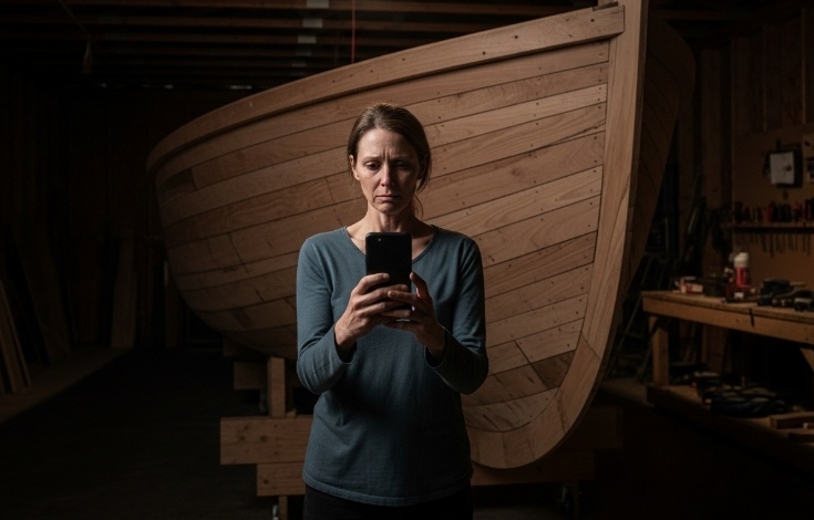 Вечером она впервые за много лет вошла в его святилище - гараж. Пахло смолой, лаком и мужским потом. Посреди гаража, на подпорках, стоял остов «Надежды» - гладкие, любовно отшлифованные бока, почти готовая палуба. Это был его мир, его алтарь. А она пришла сюда как вор, как осквернитель.