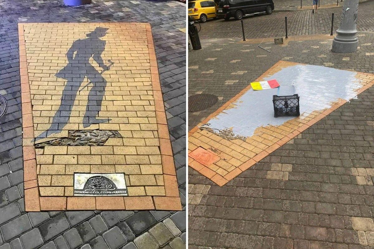 Неизвестные залили краской арт-объект «Тень Пушкина» в Одессе. На месте лежит табличка о «реорганизации пространства». В прошлом году памятный знак уже замазывали красной краской. Будет ли памятный знак полностью уничтожен, не уточняется. Никак им покоя Пушкин не дает. 👍 БайБайден. Подписаться