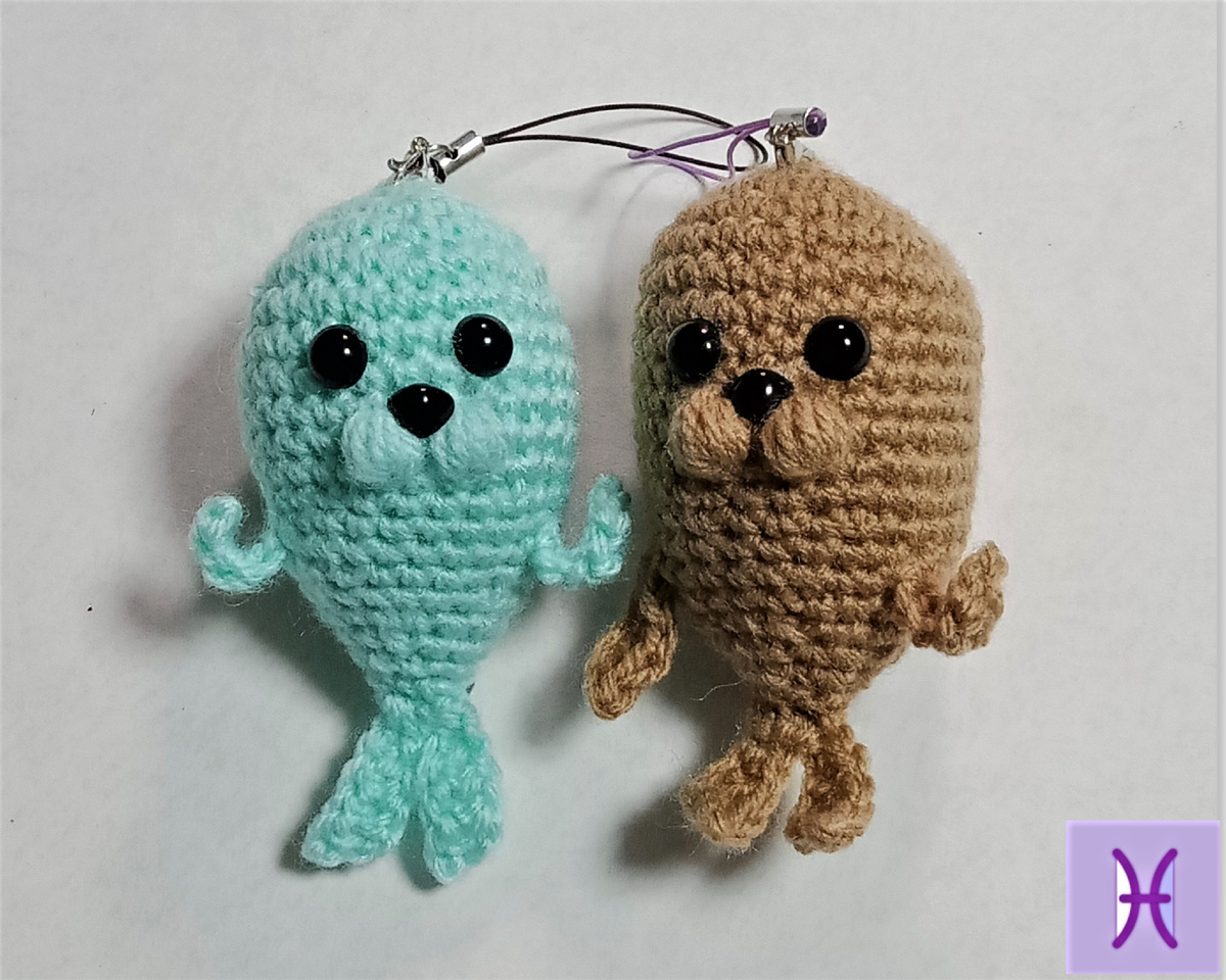Дорогие мои подписчики. Предлагаю вашему вниманию мастер класс по вязанию небольшого брелочка Тюленьчик. Брелок очень легкий в изготовлении. В вязании, как мне кажется уже изобрели все приемы. Вот и мастер классов по вязанию тюленей, моржей также достаточно много. Пока я училась вязать то пересмотрела несколько. Но, в каждой фигурке был какой-либо недостаток, лично для моего восприятия. Не хочу обидеть мастеров и повторю, что лично для меня. В одном мастер классе фигурка получается слишком маленькая, в другом не нравится мордочка, в третьем ласты не похожи на ласты. И я решила переработать несколько вариантов и родился тюленьчик. Мой Тюленьчик. Материалы: 1. Пряжа Пехорка детская серия Новинка 100% акрил, 200 м.п./50 гр. 2. Крючок № 1,9 3. Наполнитель - синтепух 4. Глазки - черные полубусины 6 мм 5. носик пластиковый Условные обозначения: 1. КА - Кольцо амигуруми 2. сбн - столбик без накида 3. пр - прибавка 4. уб - убавка 5. сс - соединительный столбик 5. ВП - воздушная петля 6. пссн