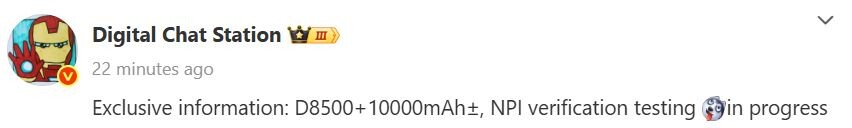 Инсайдер Digital Chat Station сообщил о тестировании компанией Honor нового смартфона на базе процессора MediaTek Dimensity 8500, который получит аккумулятор емкостью 10 000 мАч. Устройство, название которого пока не раскрыто, находится на стадии NPI (New Product Introduction) и может выйти в Китае вскоре после Redmi Turbo 5 — первого смартфона с этим чипсетом, анонс которого ожидается в декабре 2025 года. Чипсет Dimensity 8500, изготовленный по 4-нм техпроцессу TSMC, сохраняет CPU-архитектуру предшественника (Dimensity 8400), но обновляет GPU до Mali-G720, что, по прогнозам, обеспечит более 2 млн баллов в тесте AnTuTu. Ожидается, что Honor представит свою модель в конце 2025 или начале 2026 года. Помимо Honor, аналогичные устройства готовят Realme (Neo 8 SE) и iQOO (Z11 Turbo). Точные характеристики Honor D8500 пока неизвестны, но дальнейшие утечки могут раскрыть детали в ближайшие месяцы.