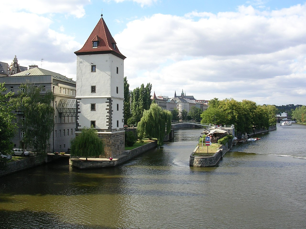 Это не первая статья о "самом-самом" в столице Чехии. Поэтому не надо задавать в комментах вопросы вроде "а где про самый маленький дом?" или "почему нет ни слова про самую короткую улицу?". О самом маленьком доме, самой короткой улице и многом другом я уже написал, и ссылки на эти статьи вы найдете в конце текста. А сейчас - о рекордах Праги, о которых я еще не рассказывал. На своем канале я очень редко затрагивал тему островов на Влтаве в пределах Праги. Ну вот как-то так получилось. Чтобы островам не было обидно, начну статью с одного из них - самого маленького. Площадь Петржилковского острова - всего 60х10 м. Он находится у левого берега Влтавы, между Йирасковым мостом и Детским островом. Раньше остров был больше, но во время строительства Смиховского шлюза часть его присоединили к Детскому острову. Свое название остров получил благодаря мельнице, принадлежавшей бюргеру по имени Ян Петржилка. На Петржилковском острове находится водонапорная башня, построенная в XVI веке. Она обесп