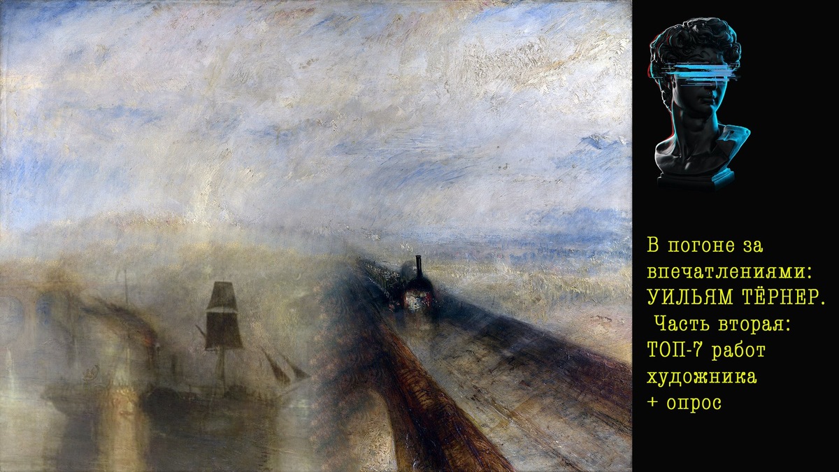 В эпоху, когда железные дороги захватили Англию, живописцы, чутко реагировавшие на перемены, отражали эту лихорадку в своих работах. Но даже на этом фоне Тёрнер выделялся. Если другие стремились воспеть красоту техники, максимально точно изображая её детали, Тёрнер устоял перед этим соблазном. Его главная задача — передать ощущение скорости. Подобно тёмному, свирепому зверю, поезд мчится по новому мосту, возведённому в период с 1837 по 1839 год. Пейзаж позади окутан дымкой, а внизу картины — маленькая лодка и пахарь, застывшие в своей статике, словно символ уходящей эпохи размеренности. На речном берегу выписаны призрачные фигуры, завороженные зрелищем поезда. Эта картина Тёрнера вызывала восторг у зарождавшихся импрессионистов.