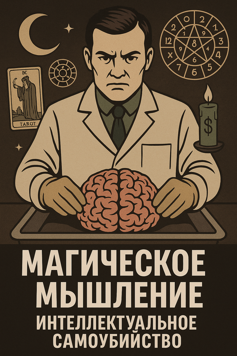 Садитесь поудобнее. Сегодня будем говорить о том, что превращает взрослых, дееспособных людей в трепещущих адептов лунного календаря и натальных карт. О великом и ужасном "магическом мышлении". О той сладкой отраве, что позволяет вам не думать своей головой, а делегировать свою жизнь гороскопам, нумерологам, тарологам и прочей нечисти, что кормится на ваших страхах. Вы правда думаете, что положение Юпитера в седьмом доме имеет большее влияние на ваш брак, чем ваше неумение разговаривать с партнером ртом? Вы серьезно верите, что "денежная свеча", купленная у какой-то проходимки в инстаграме, зарядит вас на богатство, а не на очередную оплату ее кредита? Это когнитивное искажение – не милая чудаковатость. Это ментальный рак. Это добровольное рабство, когда вы сами, своими руками, надеваете на свой мозг кандалы и отдаете ключи первому встречному шарлатану, который красиво расскажет вам сказку. Вы отказываетесь от единственного реального инструмента, данного вам природой – от способности анализировать, принимать решения и действовать – в пользу ритуалов, примет и знаков. Это интеллектуальное самоубийство. И я сегодня буду вашим патологоанатомом, который вскроет эту гниль и покажет, из чего она состоит. Как обычно она будет происходить без анестезии и соплей.