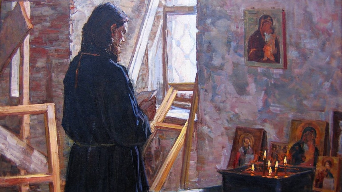 Поздно ночью в пустынной келье молился послушник
