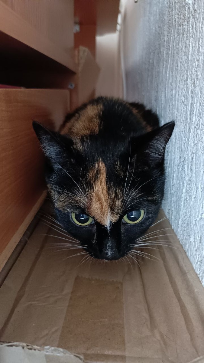 Вчера вечером нам привезли новенькую, зовут Муся. 👆 Трусливая, как Морошка, злая как Белка. 💭 Интересно, она зассыт все, как Морошка, или будет боевой с Саймоном, как Анабэлька? За ночь она так и не вышла, дела свои не сделала, не поела, ни-че-го. Очень напоминает Морошку. 💭 Как бы и эта мадама ничего не зассала мне...