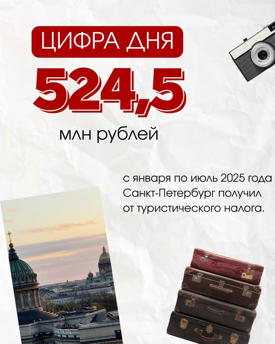 Сумма поступлений от туристического налога во 2 квартале 2025 г. в два раза больше, чем курортный сбор, который платили в том же периоде 2024 года. Напомним, что 1 января 2025 года на территории Санкт-Петербурге введен туристический налог - новый обязательный платеж для организаций и индивидуальных предпринимателей, оказывающих услуги по временному проживанию гостей города, при одновременном выполнении следующих условий: ⭕️ владение средствами размещения (гостиницы, отели, хостелы и т.д.) на праве собственности или ином законном основании; ⭕️ включение в реестр классифицированных средств размещения, предусмотренный Федеральным законом от 24 ноября 1996 года № 132-ФЗ «Об основах туристской деятельности в Российской Федерации». До 1 сентября 2025 года: Гостиницам, которые уже были включены в отраслевой перечень и имели действующее свидетельство о классификации, необходимо пройти оценку соответствия требованиям и предоставить информацию о подтверждении соответствия в новый реестр Пос