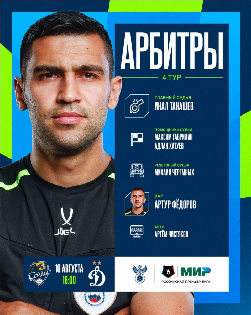 Лучший арбитр 4-го тура🔥🔥 Инал Танашев с оценкой 8,5