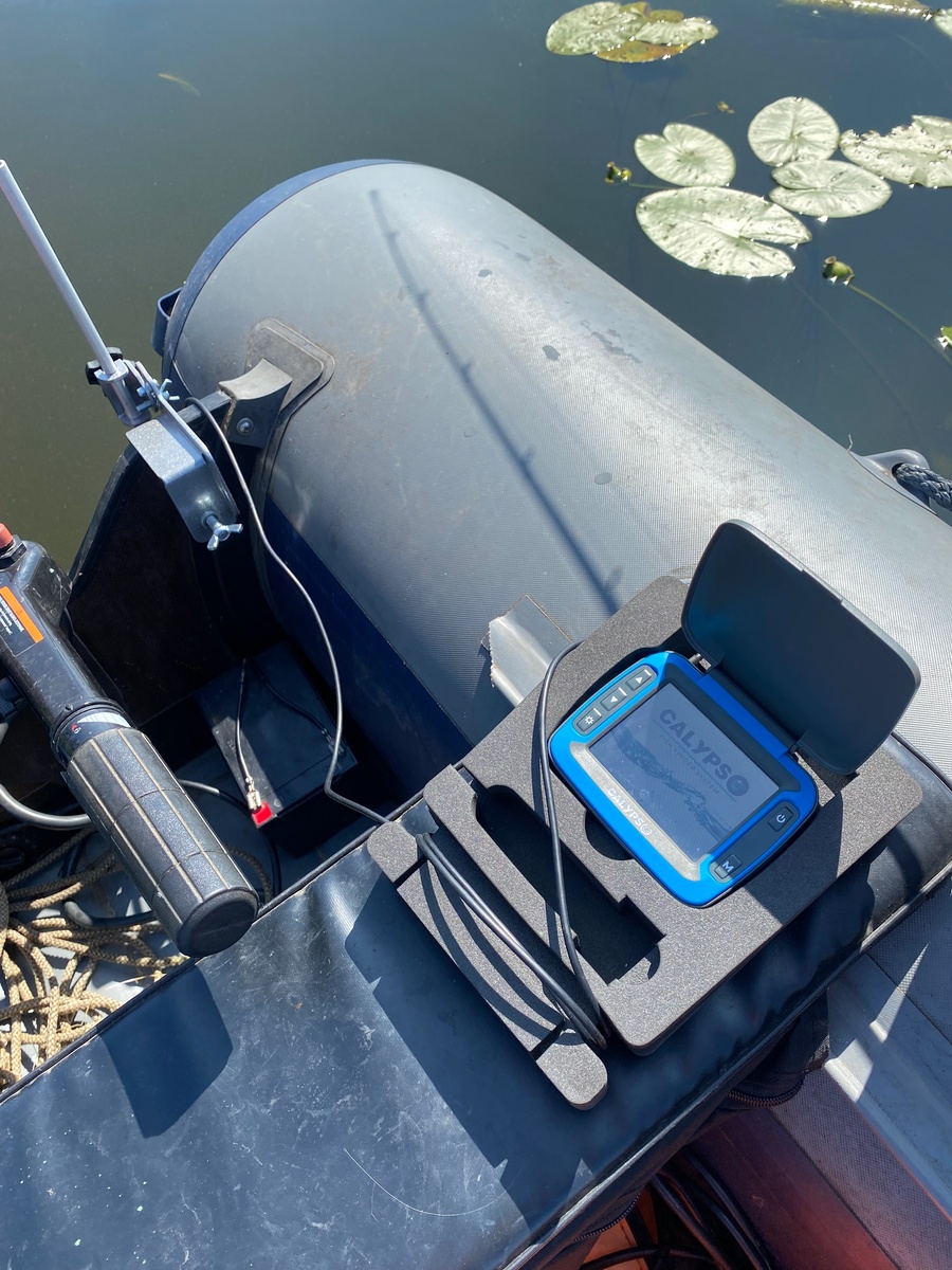 Этим летом на рыбалку выбирался редко. Вот на летнюю рыбалку наконец то оснастил Calypso. Столика специального дня него мне и не надо, так как у него есть в комплекте зимний унибокс, в котором надежно закреплен эхолот, и просто положил на сумку или сидушку.