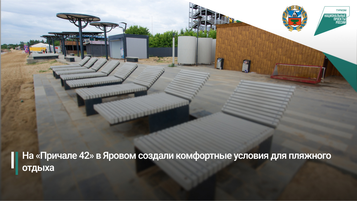 В пик летнего сезона на озере Большое Яровое туристов встречает обновлённая инфраструктура пляжно-развлекательного комплекса «Причал 42». В этом году здесь появился новый сервисный блок и благоустроенная прогулочная зона вдоль набережной. Работы выполнены благодаря поддержке национального проекта «Туризм и индустрия гостеприимства».