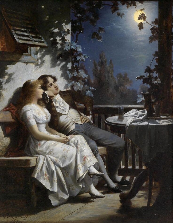 Нет, герой любит ее. Ну как любит…Для него любить – значит, приходить на свидания лунной ночью. Луна, роща, романтика…Будто пьеса или…картина.