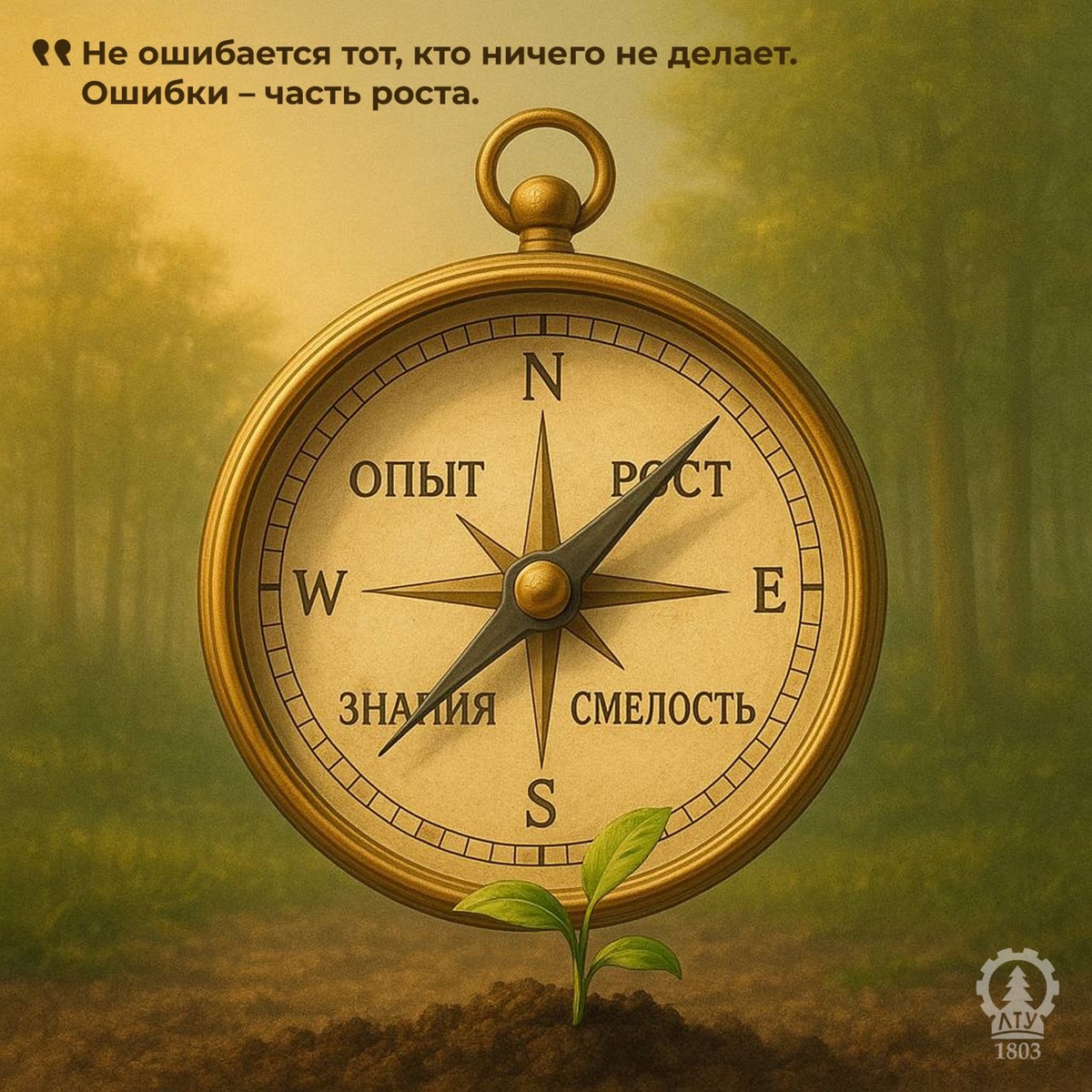 🤩 Доброе утро! День начинаем с мудрого напутствия! Пусть оно ведет вас сегодня, как надежный компас 🌷 Не ошибается тот, кто ничего не делает. Ошибки – часть роста. 🤩СПбГЛТУ – безопасное пространство для вашего профессионального становления! Не бойтесь пробовать новое и учиться на опыте! Дерзайте 🌱