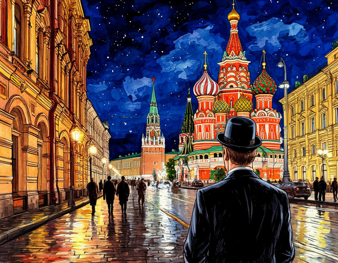 "Добро пожаловать в Москву. Сейчас субботний вечер, и скоро пробьет полночь. Всего несколько часов назад эти улицы были полны людей, семей, гуляющих и наслаждающихся спокойной прогулкой. Но теперь атмосфера изменилась, настроение поменялось, и мы отправимся на небольшую прогулку, чтобы посмотреть, как выглядит Москва, когда солнце садится, а ночная жизнь берет свое. Поехали".