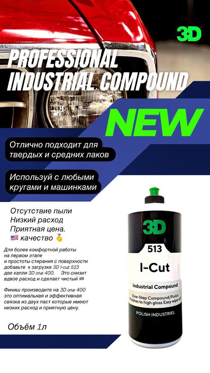 Берите на заметку: Если взять 3D I-cut 513 в паре с 3D one 400 1️⃣на первом этапе подмешать 513 + 400 на круг, это повысит лубрикацию и длительность цикла работы, что значительно снизит расход. можно добавлять лубрикант как на видео но проще сделать как писал выше, при этом будут проще стираться остатки пасты и сам процесс резки станет комфортнее и чище. 2️⃣На втором этапе все просто 3D one 400 🏁 финиш ( Подбор машинок и кругов остается частью связки который вам придется выбрать под каждый этап. Оптимальный выбор 🔪•ротор+мех+513+400 50/50%на круге, 1000об/мин 🏁•эксцентрик+средний поролон+400, 4000об/мин ) 👉🏻Это оптимальная связка под многозадачность с самой низкой себестоимостью услуги с учетом покупки литровых тар 513+400. 👉🏻пасты 3D на микроабразивах! Более подробно о них здесь 👈🏻 🎯Чистый и быстрый процесс 🎯Низкий расход 🎯Без влипаний 🎯Без пыли 🎯Без силиконов и прочих блескообразователей