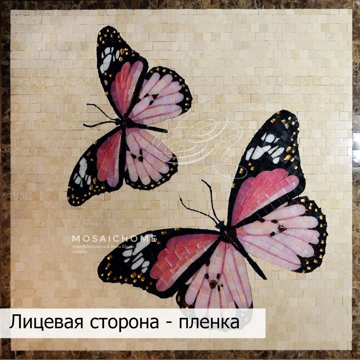 Бабочки изготовлены из стеклянной мозаики разных коллекций 20х20, 15х15, матовые и перламутровые оттенки и мозаика натуральное золото