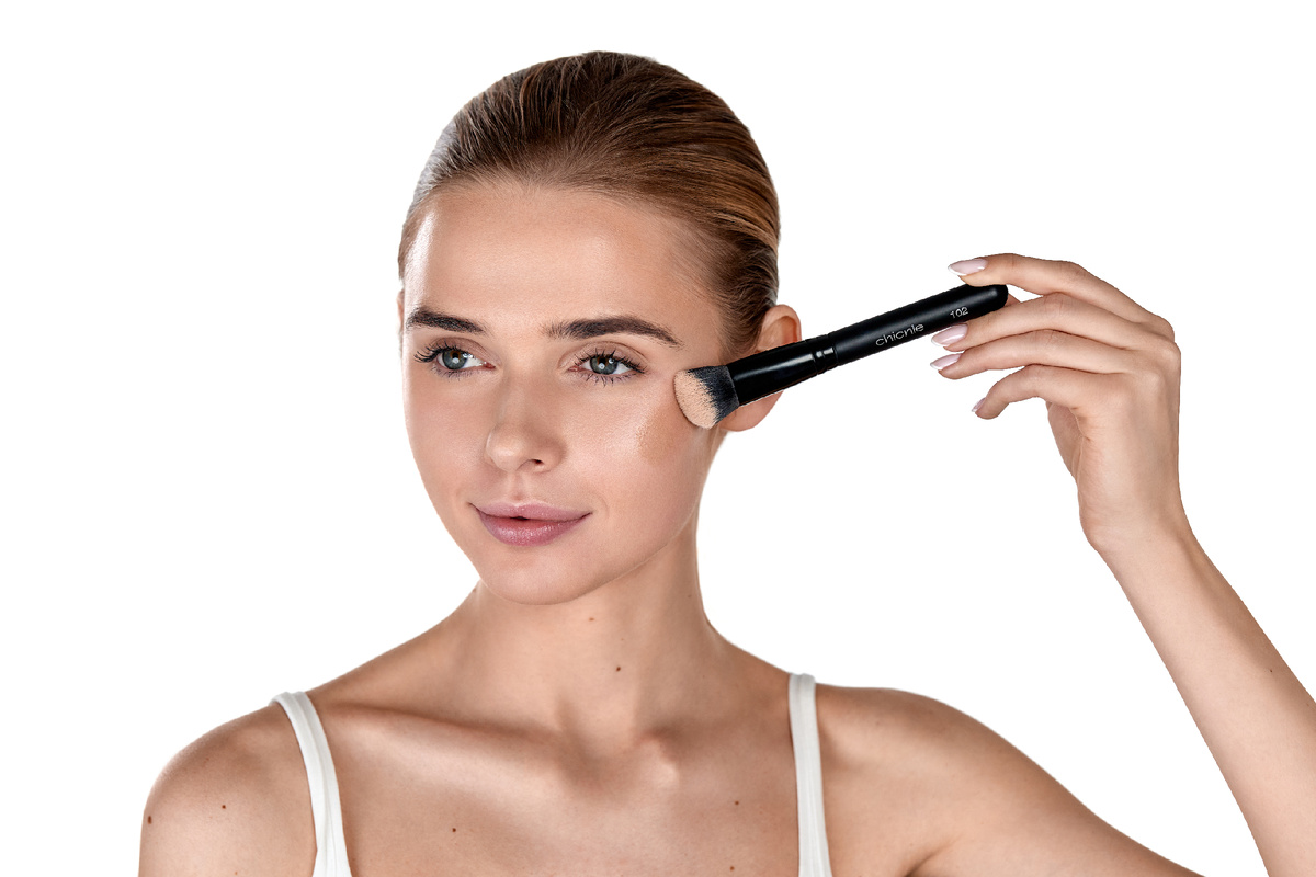 Девчонки, знакомо? Утром снова торопишься, хватаешь тональник, а вместо гладкой кожи получаешь полоски и тон, который скатывается уже к обеду. Мы это проходили, и поэтому нашли простой и универсальный способ нанесения тона — всего в три быстрых «чика»! Всего одно правило: чистая и увлажнённая кожа. Используй свой проверенный ежедневный уход: умойся, нанеси лёгкий крем — и можно начинать. И никаких танцев с «секретными» базами под макияж 😉 Что взять в руки: удобнее всего работать кистью со скошенным краем и плотным мягким ворсом. Такая форма прокрашивает и большие зоны, и уголки возле носа, а покрытие получается ровным, без полос. Поставь точки тона в ключевых зонах: Дальше — короткие мягкие движения кистью от центра лица к краям. Держи кисть так, чтобы ворс касался кожи всей поверхностью, а не только кончиком. Тогда она будет мягко скользить и равномерно распределять тон, без полос. Растушёвывай тональник похлопывающими движениями — от центра лица к краям. Круги маленькие, аккуратные,