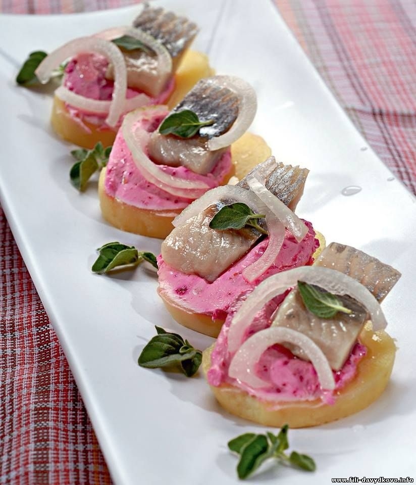 - Выложить по 1 ч. л. свекольного пюре на каждый картофельный кружок.