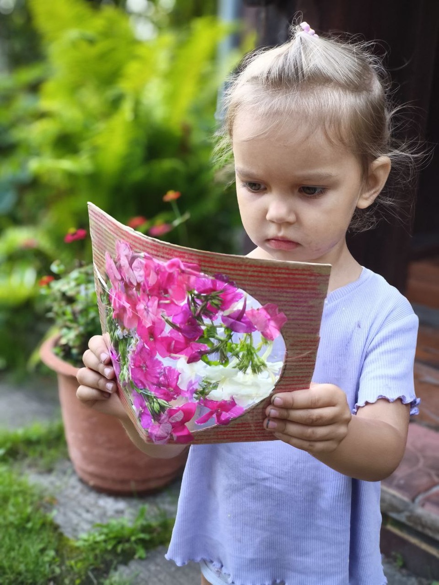 🌼 Мастер-класс «Цветочный витраж» ✨ Подходит для: детей от 2,5–3 лет с участием взрослого, старшие дети могут работать самостоятельно. ⏳ Время: 20–30 минут. 🌳 Где: на даче, во дворе, на прогулке. 📝 Материалы: 🎨 Картон (коробка из-под обуви или плотная папка) ✂️ Ножницы 📜 Прозрачный скотч 🌿 Полевые цветы, листочки, травинки ✏️ Карандаш для обводки фигурки 🔨 Как делать: 1️⃣ Выберите форму Нарисуйте на картоне простую фигуру: сердечко 💖, круг ⭕, звёздочку ⭐, домик 🏠 — то, что нравится ребёнку. 2️⃣ Вырежьте серединку Аккуратно вырежьте внутреннюю часть, оставив рамку 2–3 см. 3️⃣ Создайте «окошко» Наклейте скотч липкой стороной внутрь. 4️⃣ Соберите материал 🌸🌻🍃 Пусть ребёнок найдёт самые красивые цветы и листья! 5️⃣ Заполните рамку Разложите находки на скотче. 6️⃣ Закройте витраж Закрепите сверху вторым слоем скотча. 7️⃣ Полюбуйтесь! 🌈 Поднимите к свету — и волшебство заиграет красками! 💡 Плюсы для ребёнка: 🧩 Мелкая моторика 🌎 Знакомство