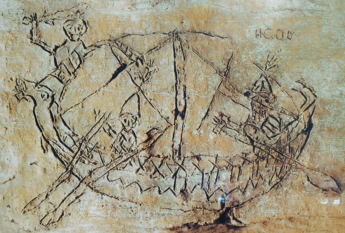 Корабль. Граффити на стене церкви Успения на Волотовом поле. Новгород, XIV в.