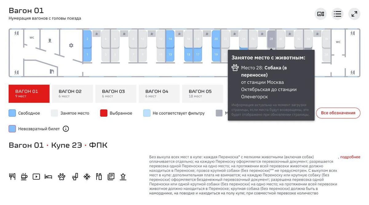 🐶 РЖД будут показывать места в вагонах, на которых едут пассажиры с животными