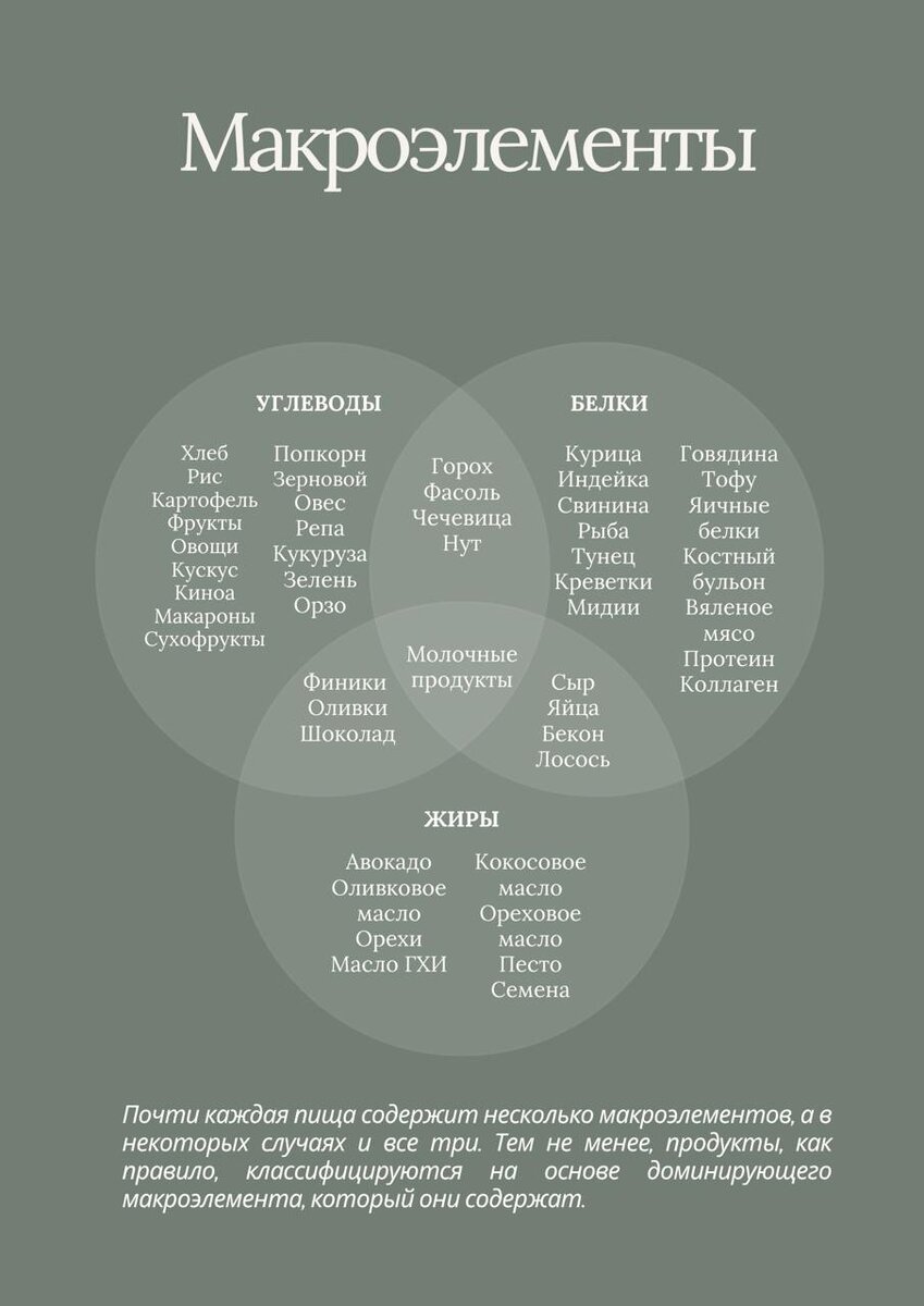 Что такое макроэлементы и зачем они нужны? 🍽️ Белки, жиры и углеводы — это основа нашего питания. Они дают энергию, участвуют в строительстве тканей, поддерживают гормональный баланс и помогают нам чувствовать себя сытыми. 🔹Белки — строительный материал для мышц, гормонов, ферментов. 🔹Жиры — источник энергии, усвоения витаминов и здоровья кожи и мозга. 🔹Углеводы — основной источник топлива для мозга и тела. 📌Почти каждый продукт содержит несколько макроэлементов сразу, но обычно можно выделить, какой из них доминирует. Например, орехи — это в первую очередь жиры, но в них есть и белки, и углеводы. Если ты хочешь: – понимать, из чего состоит твой рацион – балансировать приёмы пищи без жёстких правил – знать, как сочетать продукты для энергии и сытости 📖Всё это подробно разбираю в моей книге — с примерами, схемами и готовыми комбинациями. Книга "Ближе к телу" ⚠️ Со следующей недели поднимаю цену, поэтому сейчас — самое время взять её выгодно.