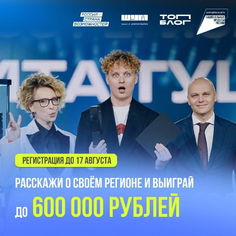 🤩Медиаспециалисты, внимание: у вас есть возможность стать «Голосом региона» и выиграть до 600 тысяч рублей! Всероссийский проект «ТопБЛОГ» и арт-кластер «Таврида» приглашают вас принять участие в премии «ШУМ»! Это ваш шанс рассказать о своей малой родине, представить свои медиапроекты на премии «ШУМ» в номинации «Голос региона» и побороться за денежные призы! Как участвовать? 🤩Вы журналист, блогер или медиаспециалист от 18 до 35 лет? 🤩У вас есть проекты о жизни вашего региона? (Статьи, блоги, видео, подкасты, телеграм-каналы, документалки — что угодно!) 🤩Материалы были опубликованы с 1 июня 2024 по 1 июня 2025? Тогда подавайте заявку до 17 августа по ссылке: premiyashum.ru! Что вас ждет? 🤩Признание профессионального медиасообщества 🤩Денежные призы: 1 место – 600 000 ₽, 2 место – 300 000 ₽, 3 место – 100 000 ₽ 🤩Возможность стать амбассадором своего региона 🤩Шанс повлиять на медиаповестку страны! Можно участвовать командой! «Впервые Премия «ШУМ» прошла в прошлом году и сра