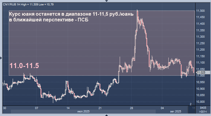 Курс юаня останется в диапазоне 11-11,5 руб./юань в ближайшей перспективе - ПСБ Курс доллара к рублю расчётный, фьючерс, вечный фьючерс и межбанк. Курс евро к рублю расчётный, фьючерс, вечный фьючерс и межбанк. Курс юаня к рублю биржевой, фьючерс, вечный фьючерс и межбанк. Курс пары рубль/юань, скорее всего, останется в диапазоне 11-11,5 руб./юань в ближайшей перспективе, полагает управляющий эксперт Центра аналитики и экспертизы банка ПСБ Денис Попов. "Рынок продолжает формировать умеренно-позитивные ожидания относительно изменения влияния внешних факторов в преддверии встречи президентов России и США на Аляске, - пишет эксперт в комментарии. - Тем не менее, итоговые последствия геополитического процесса по-прежнему неоднозначны, и это формирует повышенную неопределенность среднесрочной траектории курса рубля. В краткосрочной перспективе, напротив, ситуация представляется более понятной: курс с высокой вероятностью останется в диапазоне 11-11,5 руб. за юань и будет тяготеть к нижней г