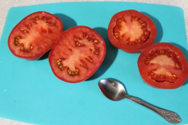 - Плодоовощные культуры. К ним относят томаты, огурцы, баклажаны, перцы. Плод разрезают пополам и аккуратно извлекают мякоть вместе с