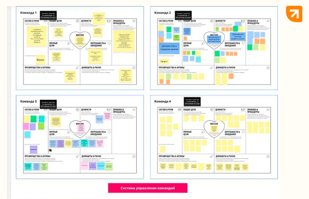 – Работу на доске Miro и полезные инструменты, такие как Team Canvas