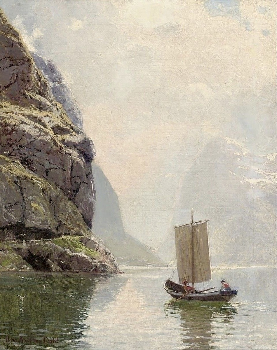 Знакомьтесь с художником: Личная жизнь Ханса Даля (Hans Dahl, 1849–1937), знаменитого норвежского художника-романиста, известного своими идиллическими сценами фьордов и девушками в национальных костюмах, была окутана настоящей драмой любви, тайны и риска. Ханс Даль, тогда еще начинающий и бедный художник , учился живописи в Дюссельдорфе у известного художника Вильгельма Барта (Wilhelm Barth). Именно в мастерской Барта он встретил его дочь, Бетси. Молодые люди страстно полюбили друг друга. Но был огромный барьер:Вильгельм Барт был категорически против их отношений. Он считал Даля неподходящей партией для своей дочери – талантливым, но бедным, с неясным будущим. Влюбленные встречались украдкой и вопреки воле отца они тайно обвенчались. Они начали свою совместную жизнь в Берлине, где Ханс Даль активно работал и строил карьеру, а Бетси стала его верной спутницей, музой и позже – незаменимым менеджером его дел. Их брак оказался невероятно крепким и счастливым. Эта история любви, начав