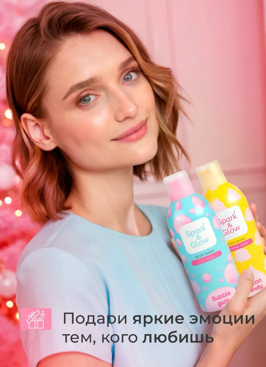 Spark&Glow — это ритуал настроения и тактильное удовольствие, которое вдохновляет заботиться о себе с улыбкой, каждый день. Мы создаём не просто уход за телом, а ароматные моменты радости и заботы, которые легко вплетаются в рутину и делают её ярче.