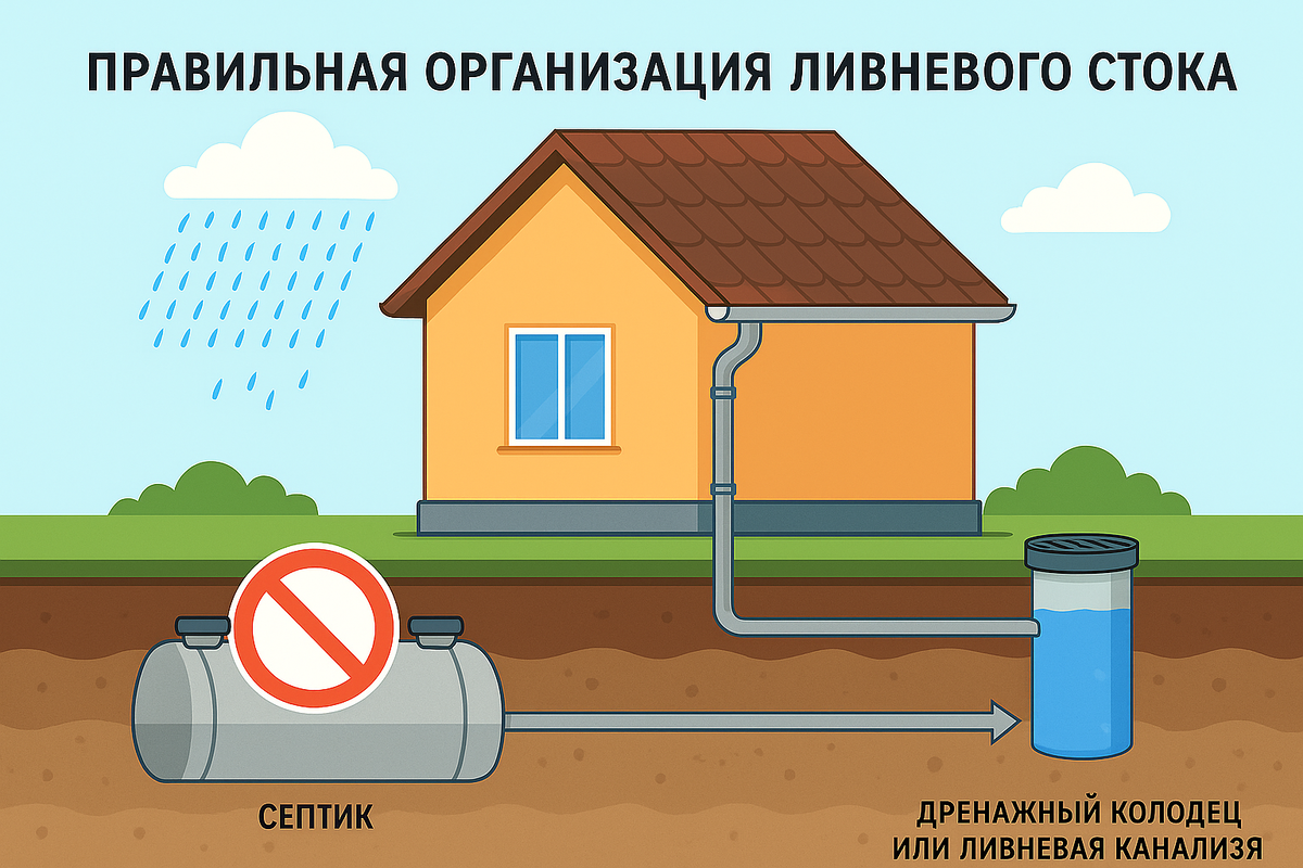 Осенью и весной дождь льет как из ведра, а зимой – тает снег. Казалось бы, природа освежает участок… Но для владельцев частных домов с автономной канализацией обильные осадки могут обернуться проблемой. Если дождевая вода попадет в септик, он быстро переполнится, нарушится его работа, появятся неприятные запахи, а в худшем случае — потребуется дорогостоящая откачка или ремонт. Разберем, как грамотно организовать слив дождевой воды и защитить свой септик от лишней нагрузки. На первый взгляд кажется: что плохого в чистой дождевой воде?