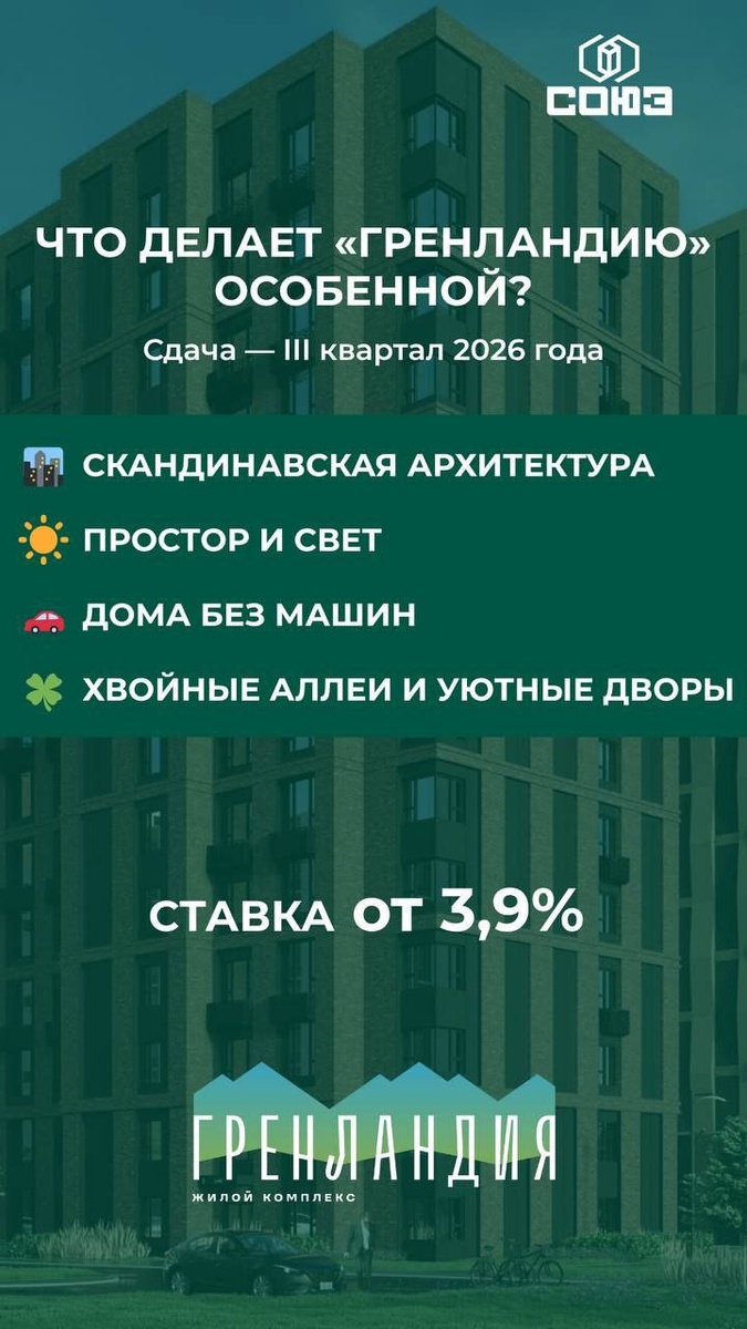 ЖК Гренландия 🌳 - первый остров в городе Новосибирск! Развитая инфраструктура🔥 Школа и два детских сада от застройщика 🔥 Привлекательные цены 🔥 Ставка от 3,9% на весь срок🔥 ‼️ В августе есть возможность зайти с частичным ПВ🤫 (за подробностями в лс @verakrec ) Хотите записаться на экскурсию, подробнее узнать о новостройке, напишите мне @verakrec