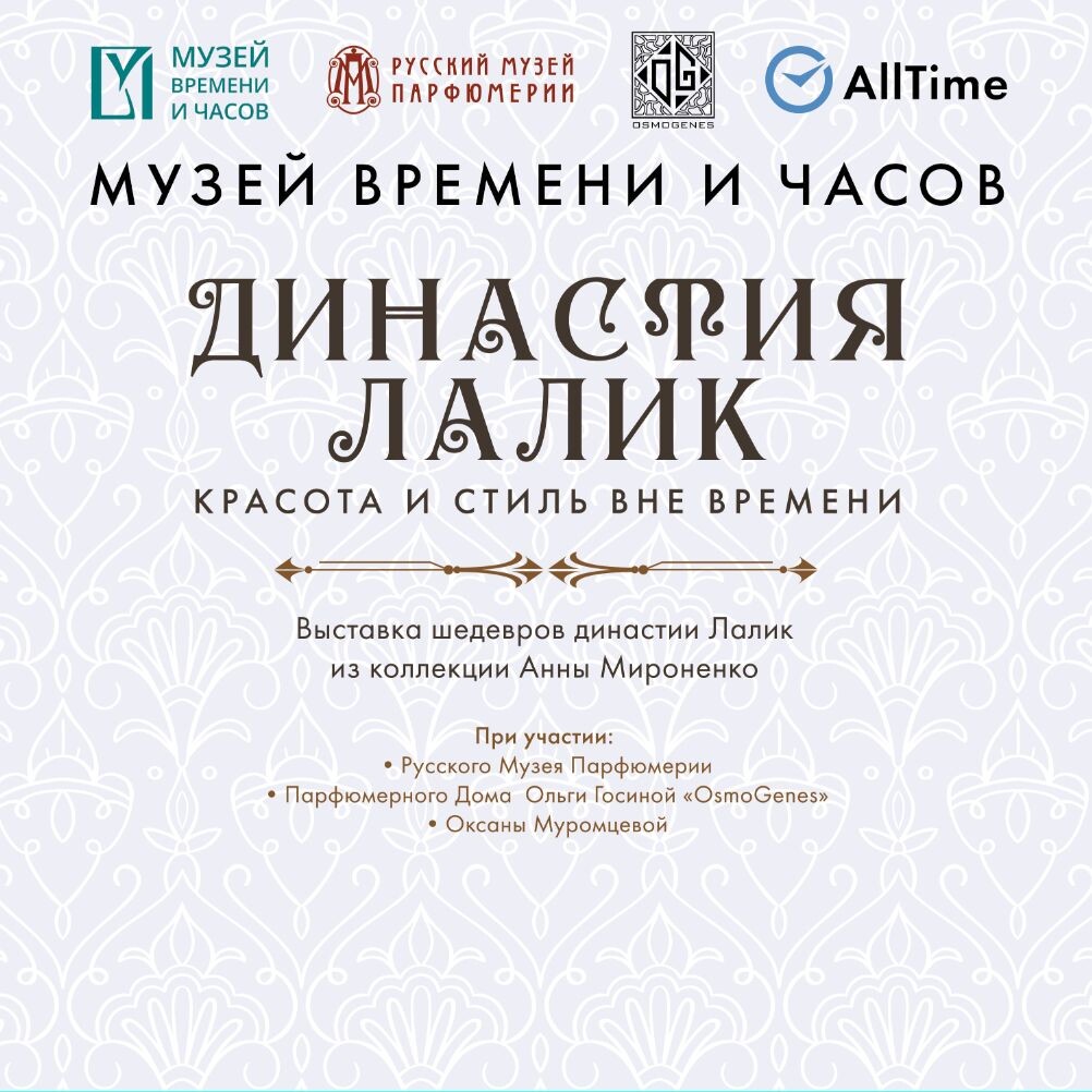 Друзья! Мы приглашаем всех 14 августа 2025 года в 19:00 в Музей Времени и Часов, где состоится открытие выставки «Династия Лалик: красота и стиль вне времени» с участием Русского музея парфюмерии. Идея выставки – показать творческое наследие династии Лалик (Lalique) в необычной области декоративного искусства: создании парфюмерных флаконов. Гости выставки смогут увидеть уникальные экспонаты из частного собрания Анны Мироненко, среди которых две прижизненные работы выдающегося французского художника, ювелира и декоратора Рене Лалика (1869-1945) — основателя династии, необычные коллекции флаконов, созданных его наследниками Марком Лаликом (1900-1977) и Мари Клод Лалик (1936-2003), а также современные работы бренда Lalique. На выставке будут показаны и предметы для дома знаменитого бренда (из коллекции Оксаны Муромцевой). Стили ар-нуво и ар-деко, в которых работал Рене Лалик, оказали большое влияние и на российских мастеров, подтверждением чему является уникальная коллекция отечестве