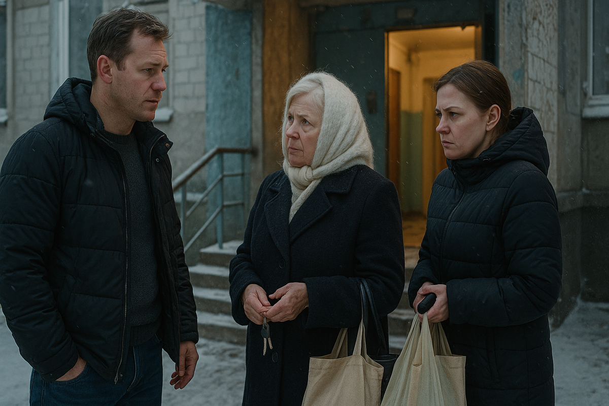 Она положила трубку и пошла в прихожую. На коврике — Игорь, с красными от мороза ушами, и за его плечом — свекровь Зоя Павловна, в белом пуховом платке, как снеговик с глазами. Чуть дальше, в лестничном пролёте, мелькали Ленины мальчишки, уже снимавшие шапки на ходу.