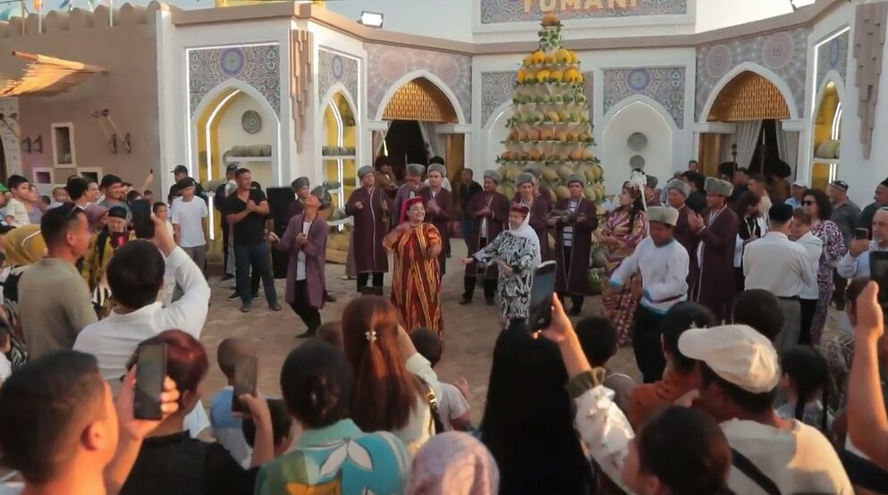 Жители узбекской Хивы знают толк в развлечениях — в воскресенье завершился ежегодный красочный праздник дыни. Участники фестиваля танцуют под традиционные мелодии и наслаждаются изобилием спелых плодов. Стенды с многочисленными ярусами дынь и арбузов. Туристка Муниса Асалхужайва рассказала, что событие расширяет гастрономический горизонт местных и гостей города. «Столько интересных павильонов. Мы очень много сортов дыни попробовали, из них смузи попробовали, из дыни сухофрукты попробовали. Даже мед из дыни тоже попробовали, очень вкусно», — поделилась участница мероприятия. По информации пресс-службы Комитета по туризму Узбекистана, фестиваль проходил с 8 по 10 августа на территориях исторического комплекса «Ичан-кала» и туристического центра «Арда-Хива». Местные фермерские хозяйства представили десятки сортов дынь, а также технологии и достижения на 19 стендах. Помимо дегустаций, туристы и жители города смогли посмотреть выступления фольклорных коллективов, поучаствовать в мастер-клас