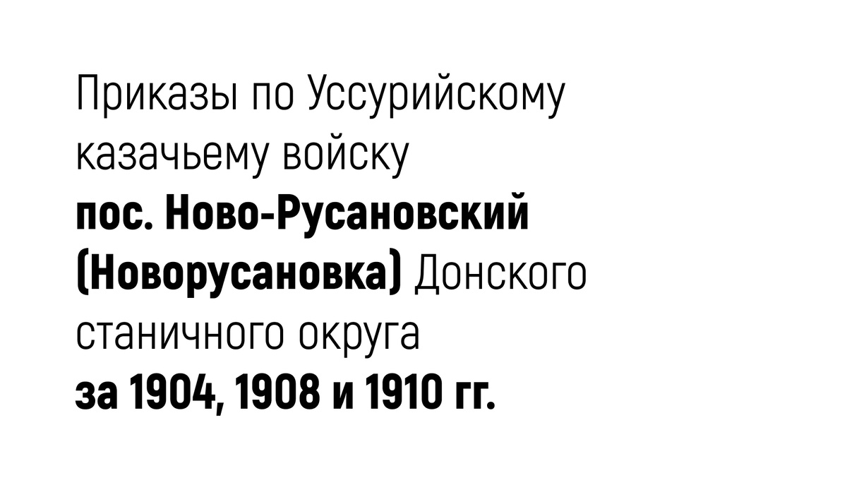 Приказы по Уссурийскому казачьему войску пос. Ново-Русановский (Новорусановка) Донского станичного округа за 1904 год
