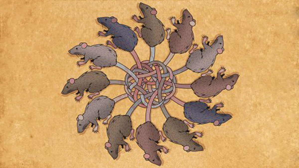В темноте подвала, среди старых досок и сухих листьев шевелится и пищит нечто странное: клубок из живых крыс, хвосты которых переплелись в тугой узел. Это не сцена из фильма ужасов, а явление, известное как «крысиный король». О нём писали натуралисты и сказочники. Но что это на самом деле? Или, точнее сказать, кто это? С научной точки зрения крысиный король — это феномен, при котором хвосты у нескольких крыс переплетаются так прочно, что животные не могут их распутать. Животные не способны нормально передвигаться, питаться или защищаться. Это приговор, вынесенный случайностью. Свидетельства находок "крысиных королей" есть с XVI века. Отдельные случаи зафиксированы даже в наши дни. Один из самых известных экземпляров был найден в Деллфельде, Германия, в 1895 году и сейчас хранится в Зоологическом музее Страсбурга. Механизм образования крысиного короля до конца не изучен, но есть несколько теорий. Молодые крысята в гнезде могут сплестись хвостами во время сна, особенно в холодную погоду