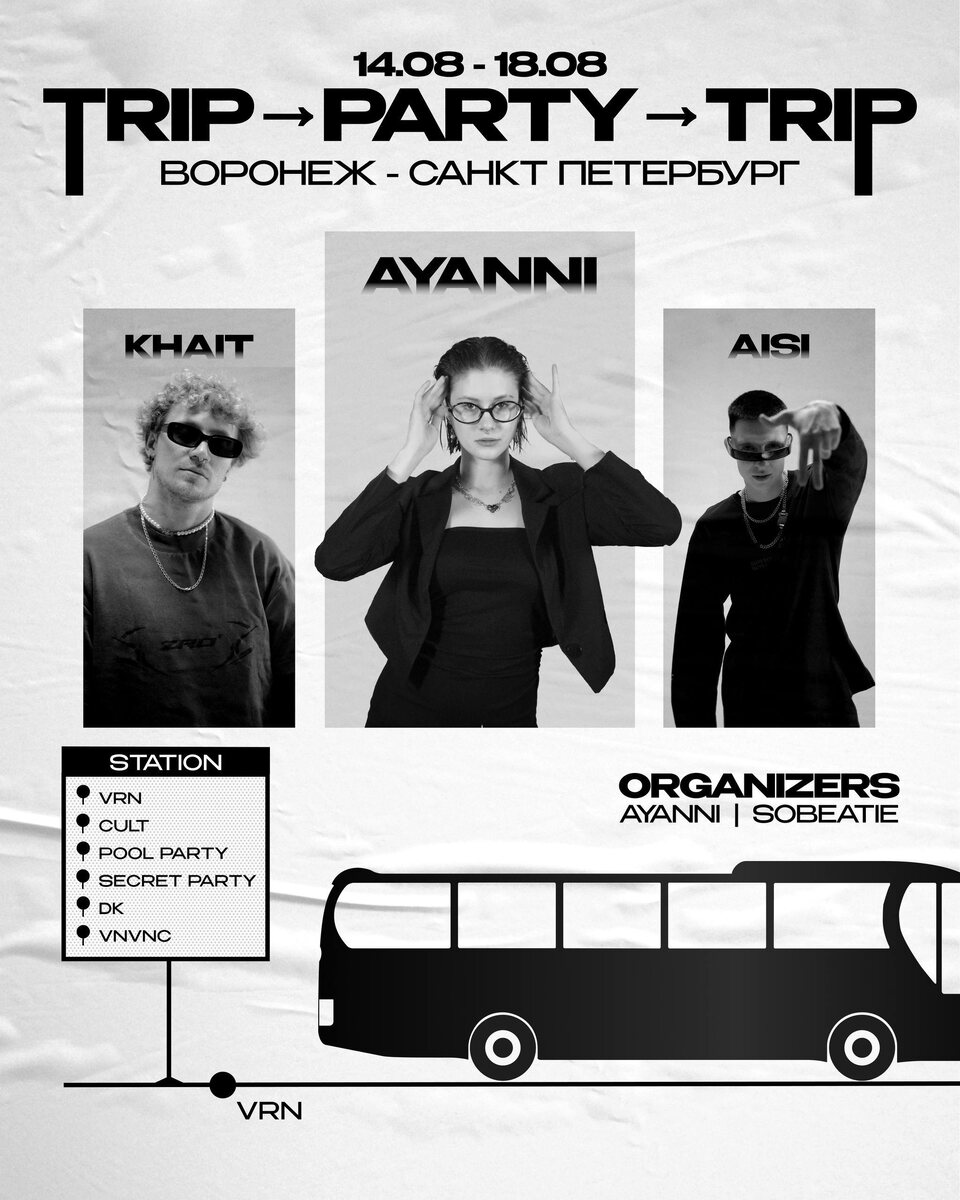 100-часовой тур по вечеринкам Питера «TRIP-PARTY-TRIP»🤤 Вы просили — мы сделали. Теперь каждый из вас может отправиться вместе с AYANNI | KHAIT | AISI и провести целых 100 часов, тусуясь, гуляя и наслаждаясь вечеринками культурной столици России. • Когда и куда? 4 дня, с 14 по 18 августа, Санкт-Петербург • Как добираемся? На большом, комфортабельном автобусе с кондиционером (диджеи идут в комплекте, тусовка всю дорогу) • Проживание? Да, в отеле, в самом центре Питера, на Невском проспекте! • Чем займёмся? Посетим 5 вечеринок в лучших клубах города, а также вечеринку у бассейна, погуляем, встретим рассвет — в общем, будет хайп. • Какие клубы и тусовки? Фестиваль 52day с полным составом тусовки 52 (FRIENDLY THUG, ALBLCK и др.) от ATLANTAACT, а так же DVOR CULTURI, VNVNC, CULT, прекрасная возможность увидеть нетипичные тусовки. Хочешь с нами? Отправь любой смайлик в лс @tpt_piter что бы узнать подробности *Стоимость билета уточняйте в личных сообщениях.