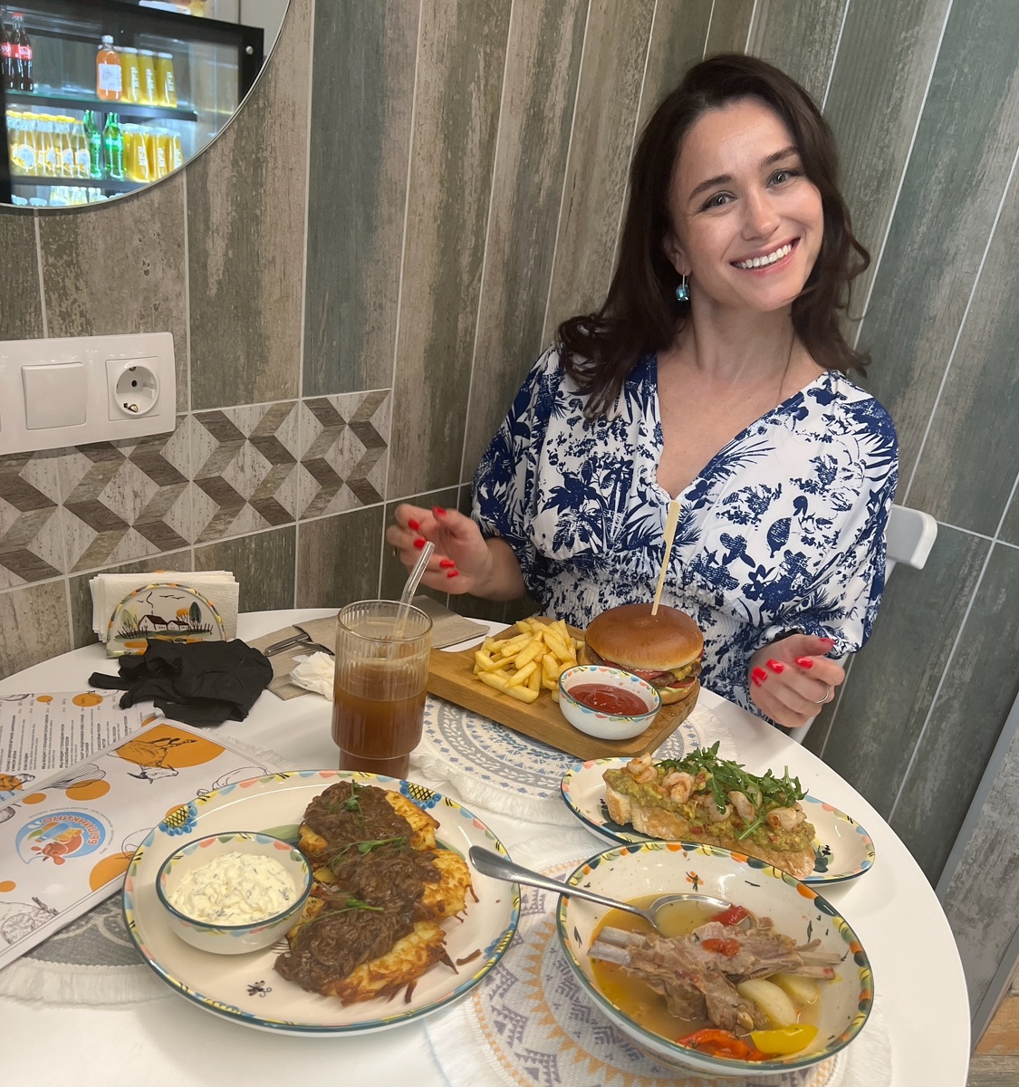 Помните, я писала про эко-ферму «Былинкино»? вот мы так подружились, что и вернувшись с фермы продолжили общение. Оказалось, что семейное кафе «Былинкино» в честных 10 минутах на машине от моего дома, а я ни разу в жизни не пробовала козлятину. Удача сама плывет к нам в руки решили мы, и я с огромным удовольствием и любопытством приняла приглашение. Само кафе располагается на территории закрытого ЖК Хорошевский. Новенький стильный красивый. Публика соответствующая. Я приехала в будний день на обед, там уже готовились принять детишек. Частный детский сад водит детишек на обед туда. Это прелесть что такое. Там чудеснейшая изолированная детская комната, которая и игровая, и столики для еды и даже отдельный санузел. Там все такое мимимишное. Отличное решение для детского праздника. И аниматоров можно пригласить, и какие-то активности организовать, и вкуууусно. У них есть такая опция. И вот.. само кафе небольшое, на 4-5 столиков. Меню в самом деле впечатляет многообразием. И овощи, и рыба,