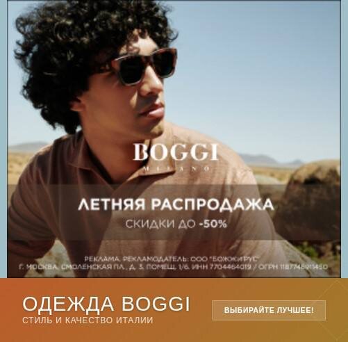Стильная одежда — залог уверенности 🤵♂️ Привет, друзья! Сегодня хочу поделиться с вами классной находкой — онлайн-платформой Boggi. Там вы найдёте всё, что нужно современному мужчине: от стильных костюмов и рубашек до удобной обуви и кожаных аксессуаров. И что самое приятное — сейчас в магазине действуют скидки и акции, так что можно обновить гардероб с выгодой 😎. Не упустите шанс приобрести качественные вещи по приятным ценам! Переходите по ссылке и знакомьтесь с предложениями: https://ya.cc/7NQrfk 😍. Реклама. Информация о рекламодателе по ссылке.