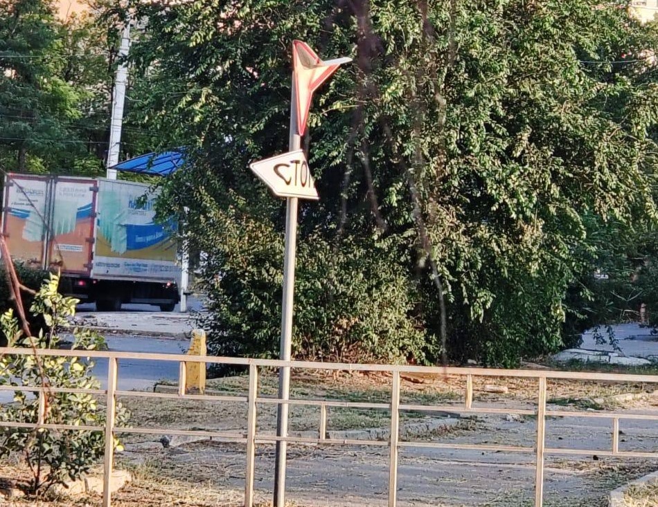 В Волгодонске вандалы изуродовали дорожный знак на центральной магистрали