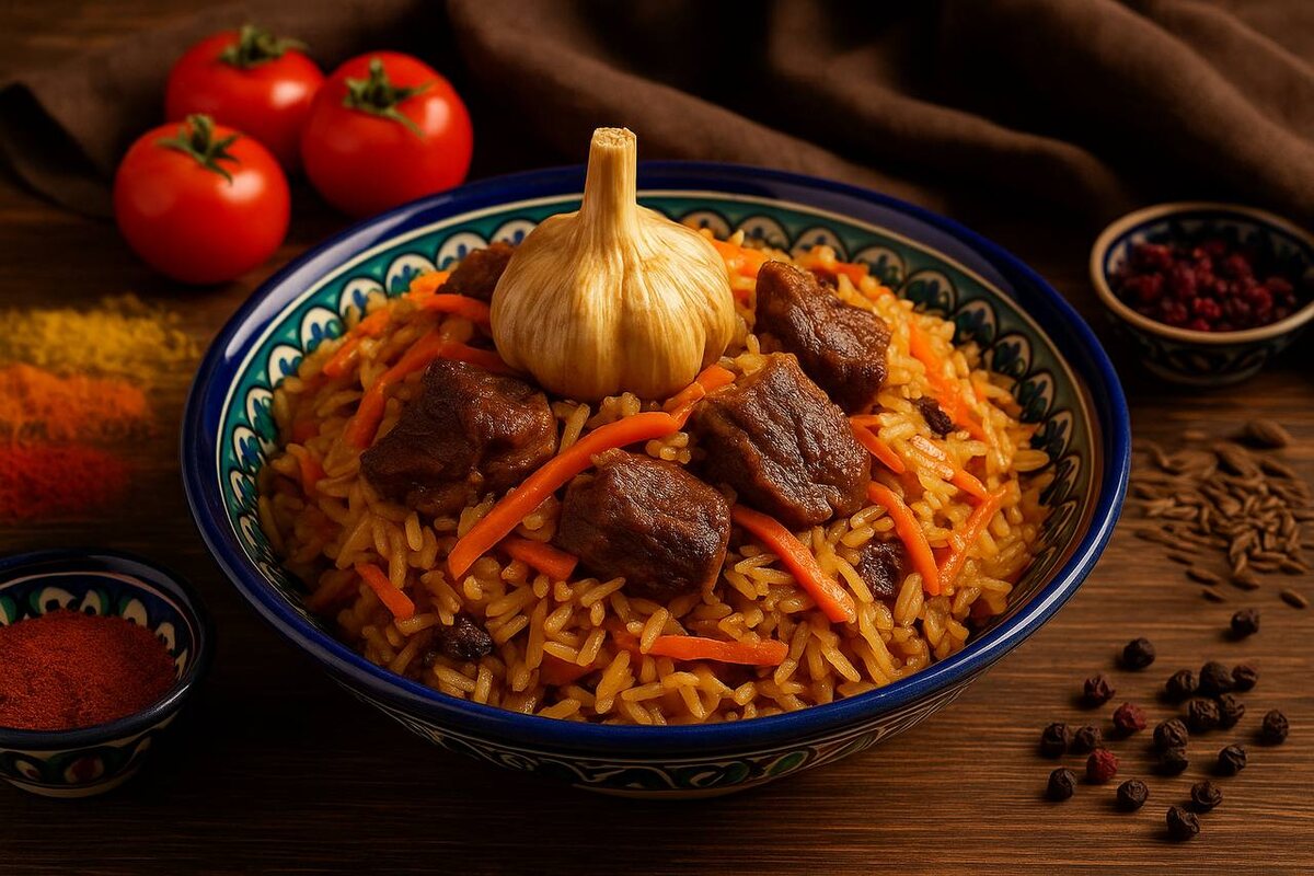 Недавно мы болтали с друзьями из Узбекистана, и они прислали фото своего ужина — в центре стола сиял огромный казан с пловом: золотистый рис, сочное мясо, чеснок, морковь, специи… Мы так загорелись идеей повторить этот рецепт, что договорились: они отправят нам настоящий узбекский набор специй, чтобы вкус получился аутентичным.