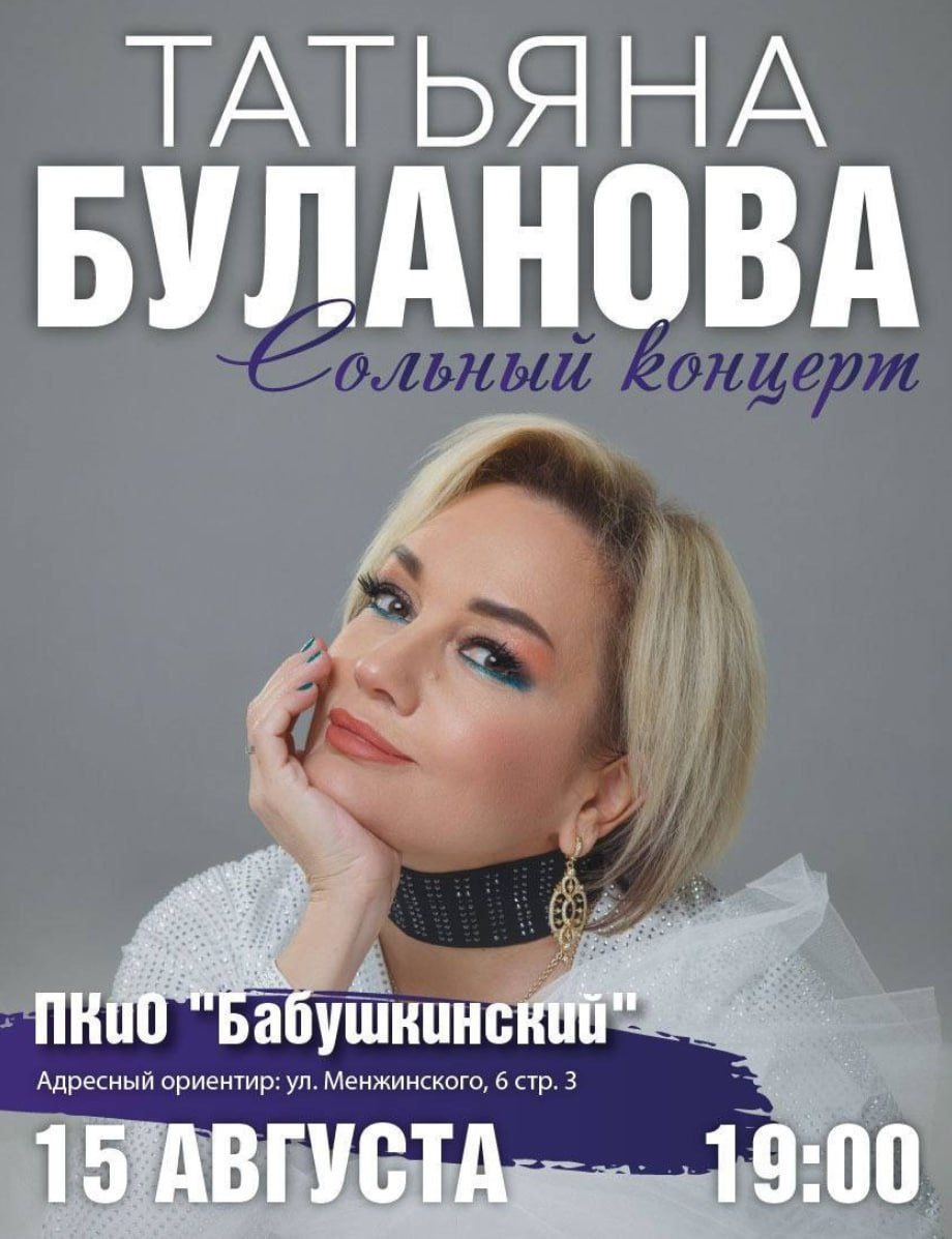 Собянин продолжает баловать бесплатными концертами. На сцене Бабушкинского парка выступит Татьяна Буланова. В программе – новые песни и хиты, которые сделали Буланову одним из символов 90-х. После концерта будет дискотека под DJ-сет. Вход свободный. Легендарная подтанцовка тоже будет😉 ⏰15 августа в 19:00 📍 Менжинского 6 стр.3 От Мытищ минут 40 на велике через цветущий Парк Яуза.