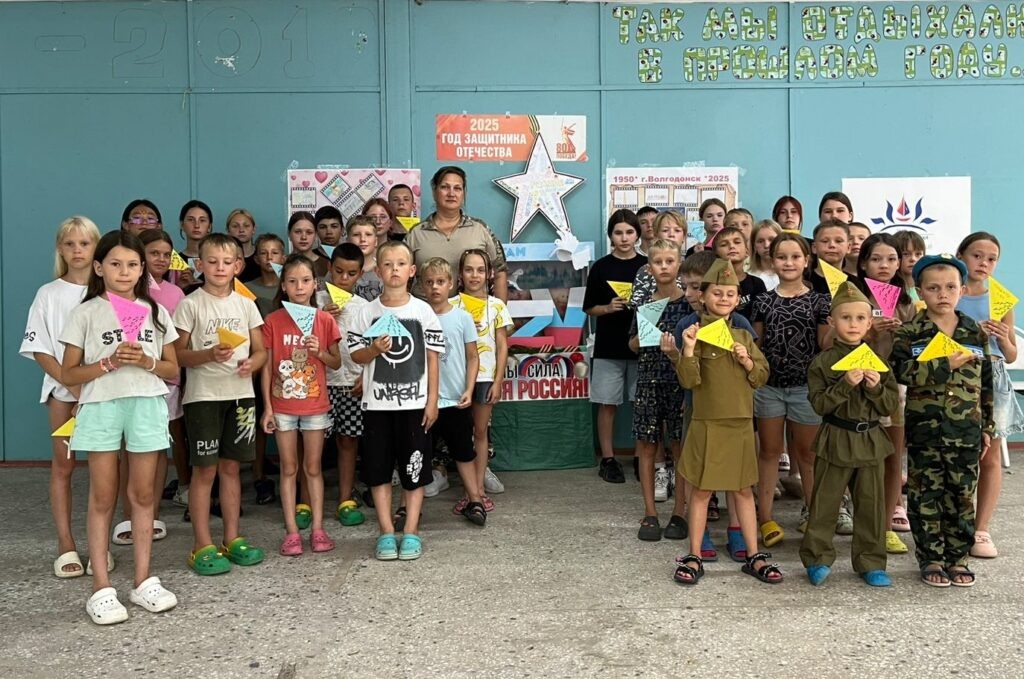 В муниципальном лагере «Ивушка» состоялась акция «Заветам верны». Воспитанники детского центра нарисовали рисунки и написали письма для бойцов спецоперации. А на фронт «солдатские треугольники» передадут в ближайшее время. Как отметила Светлана Зяблова, председатель городского отделения движения «Матери России», секретарь первичной ячейки № 6 партии «Единая Россия», письма на фронт юные волгодонцы из школ и детских садов пишут постоянно – с самого начала СВО. Рисунки и поделки ребят обязательно вкладываются в посылки, они – непременная часть гуманитарных грузов «за ленточку». Бойцы всегда рады весточкам из дома, особенно трогательным детским подаркам.