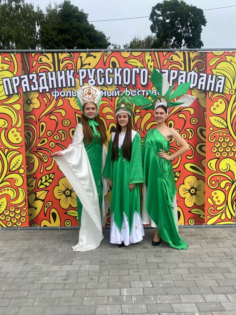 💫Обучающиеся Мичуринского ГАУ приняли участие в фольклорном фестивале «Праздник русского сарафана» (с. Изосимово). ✨Сцену украсили выступления многочисленных творческих коллективов, а главным событием, стал показ русских сарафанов, который проводился в 3-х номинациях. 💫Студентки агроуниверситета Ангелина Киселева, Ульяна Попова и Алина Камышникова представили коллекцию «Бесконечное эхо», созданную мастерами студии декоративно-прикладного искусства. Девушки приняли участие в номинации «Русская краса», продемонстрировали красоту и утонченность традиционного русского костюма.