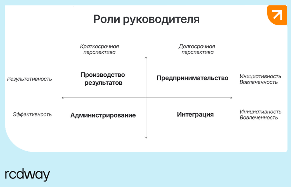 Часто проблема менеджмента начинается не с внедрения того или иного бизнес-инструмента, а с глубинного непонимания сути профессии управленца. Задача менеджера – добиваться поставленных целей посредством усилий подчиненных, т.е. объектом его воздействия является поведение другого человека. Руководитель должен умело транслировать стратегические цели на тактический уровень, чтобы рассказать сотрудникам, что делает компания, зачем она это делает и почему именно в такой последовательности. Чем четче руководитель понимает свою роль в организации, чем более эффективные результаты он покажет. Существует множество различных методов определения роли менеджера в коллективе. Мы предлагаем рассмотреть вариант, предложенный Ицхаком Адезисом. Он считал, что руководитель может выполнять четыре основных роли: